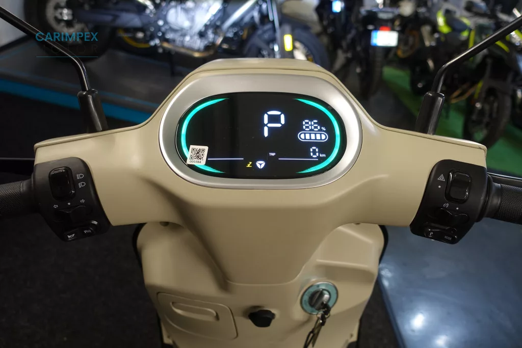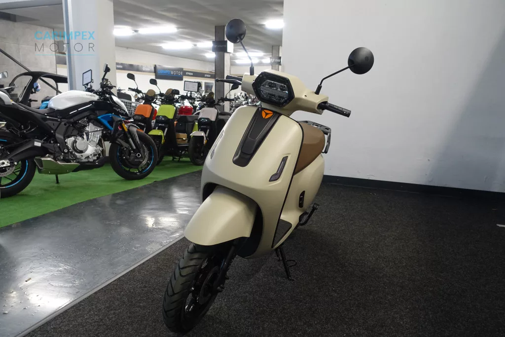 A jellegzetes, hatszögletű, gyémánt formájú LED fényszórója elegáns megjelenést kölcsönöz a robogónak, miközben erőteljes és egyenletes fényt biztosít.